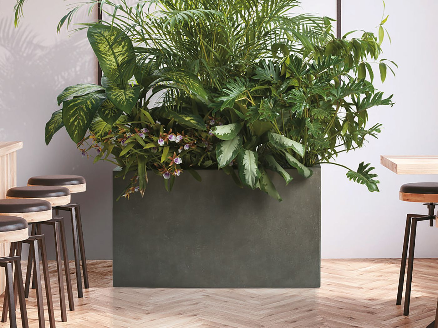Die täuschend echt aussehenden Finishings wie Beton, Stein oder rostiges Eisen unterstreichen die klaren Formen. Für jeden Stil ein passendes Pflanzgefäß, in vielen Farboptionen.